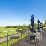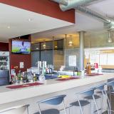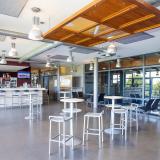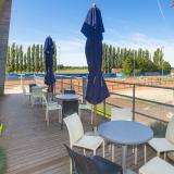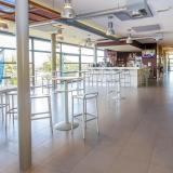Pour vous détendre après l'effort, la grande cafétéria panoramique du complexe vous propose une vue imprenable sur les terrains intérieurs, ainsi qu'une terrasse donnant sur les terrains de tennis et de football extérieurs.