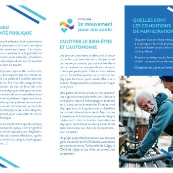 La sédentarité est un véritable enjeu de santé publique, en particulier chez les personnes atteintes d’affections chroniques ou les seniors. Pour y répondre, la Ville d'Ans accueille désormais le programme « Citoyen, en mouvement pour ma santé », développé par l’Université et le CHU de Liège avec le soutien de l’AVIQ.